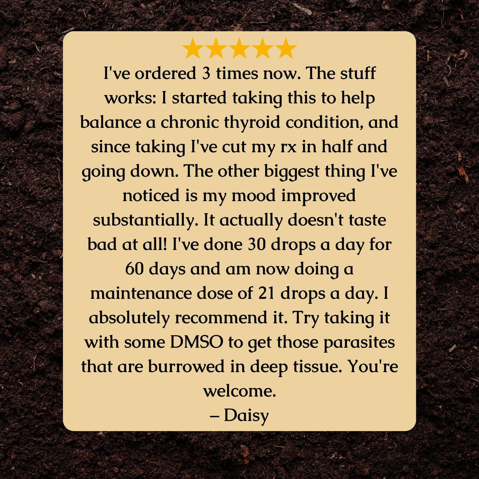 Parasite cleanse herbal tincture made by infusing Organic Black Walnut Hull (Juglans nigra), Organic Burdock Root (Arctium lappa), Organic Barberry Root (Berberis vulgaris L), Organic Clove Bud (Syzygium aromaticum), and Organic Dandelion Root (Taraxacum officinale) into organic Minnesota alcohol for 10+ weeks. 1 fl oz with 42 servings or 2 fl oz with 84 servings. 1:2 herb to alcohol strength ratio for 500 mg/mL herb equivalency.